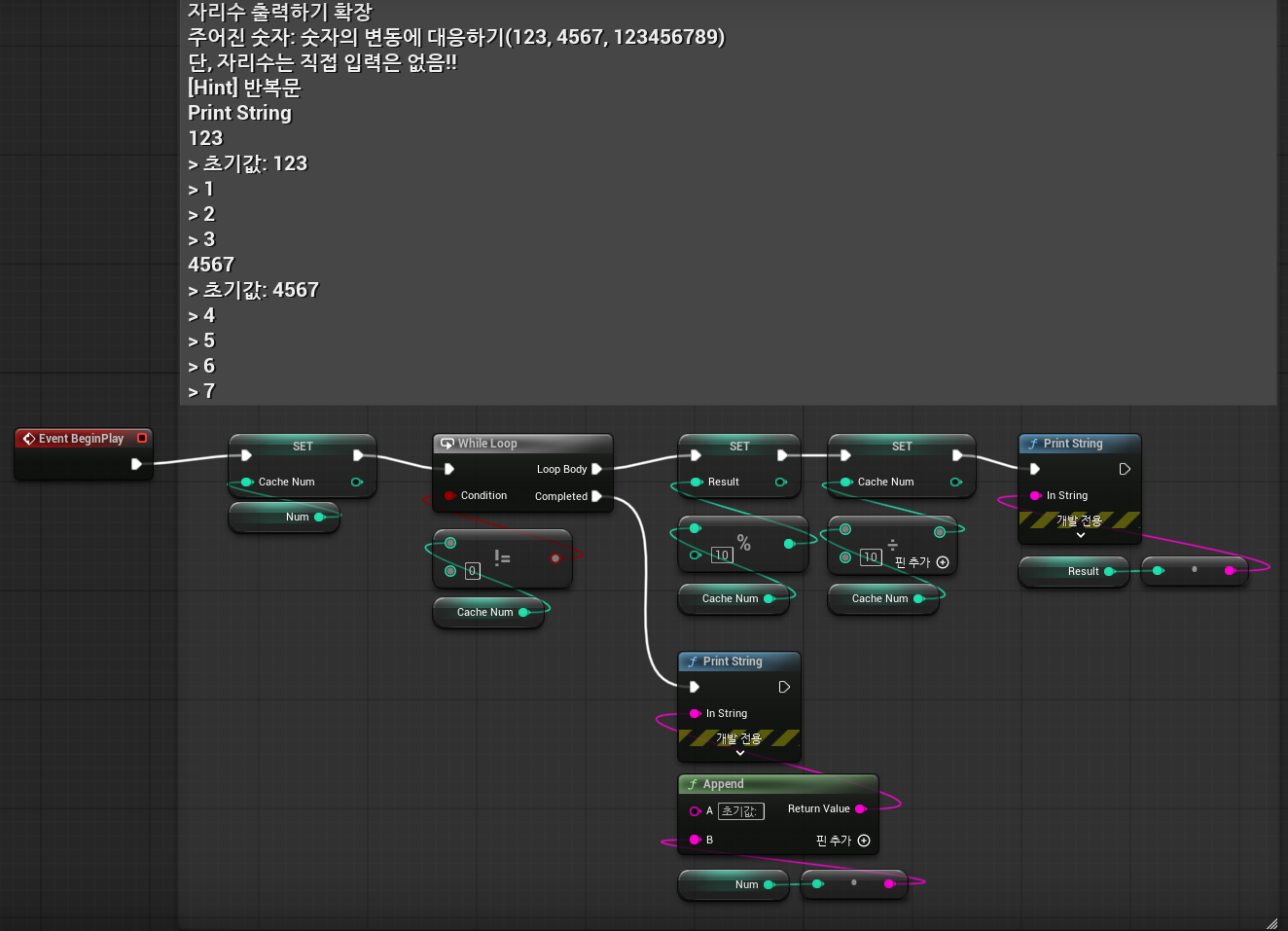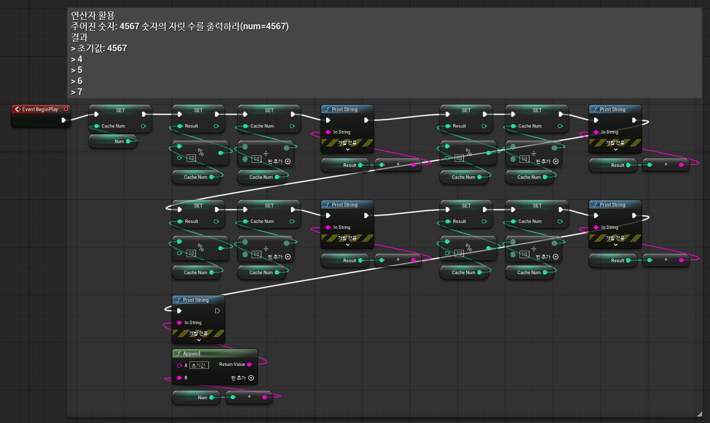 - 주어진 숫자: 4567의 자릿수를 출력하라(num=4567