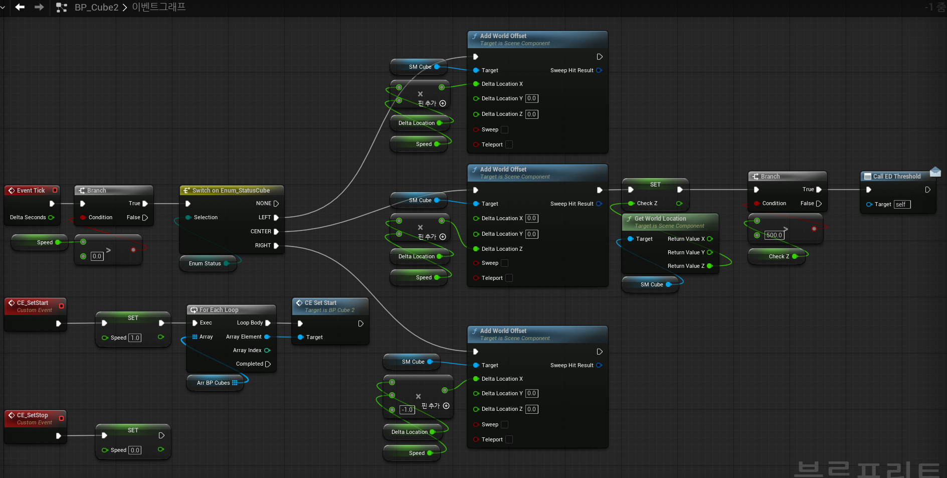 - BP Class → Level BP를 이용해 2번이 특정 높이(500)이상 높아지면 1번이 다시 이동한다고 신호를 보낸다.